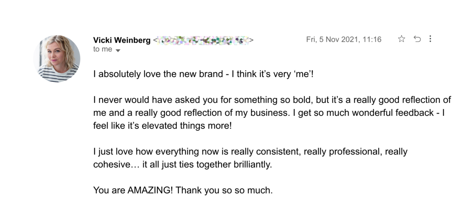 “I came to Cara feeling my brand needed elevating but wasn’t sure how. Her highly effective tweaks - refining my logo, monogram and colour palette - completely changed the overall feel. I’m so happy with how premium and on-brand it looks!”